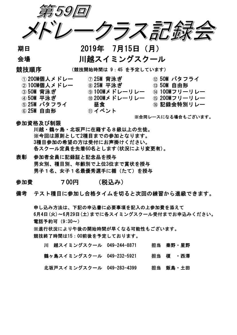 メドレークラス記録会のお知らせ