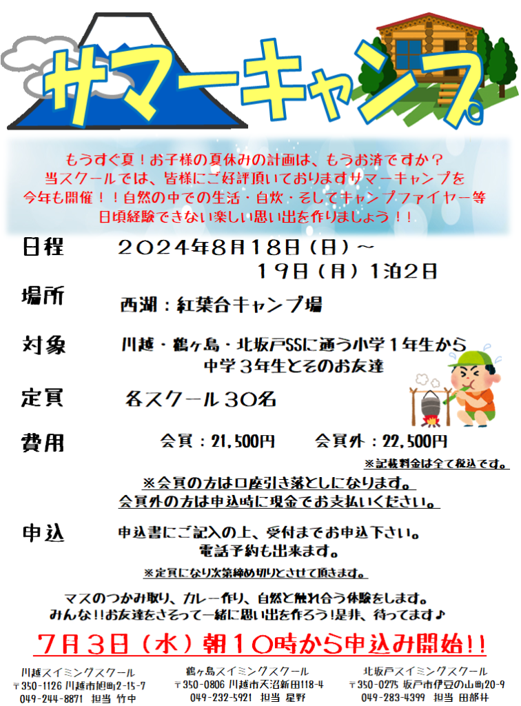 サマーキャンプのお知らせ