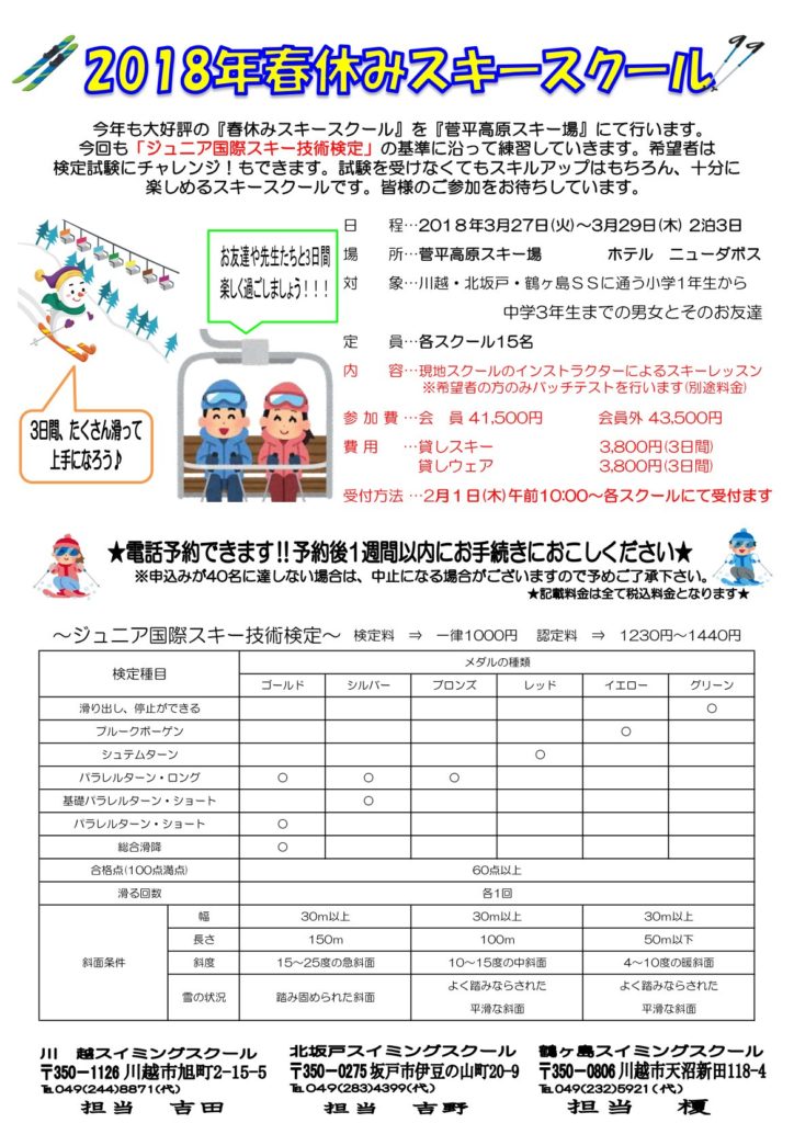 春休みスキースクールのお知らせ