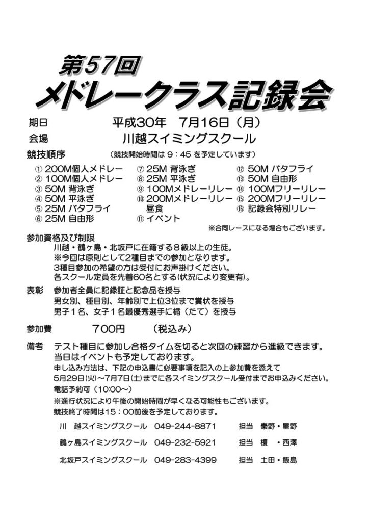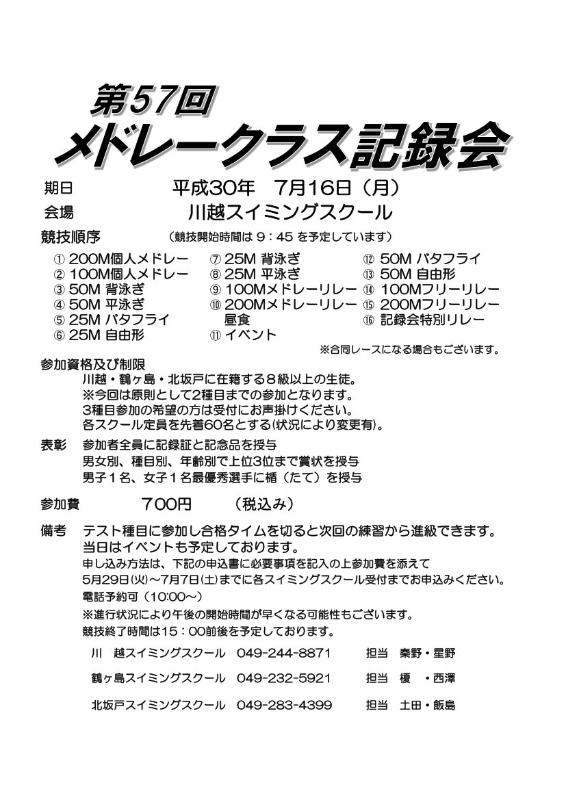 メドレークラス記録会のお知らせ