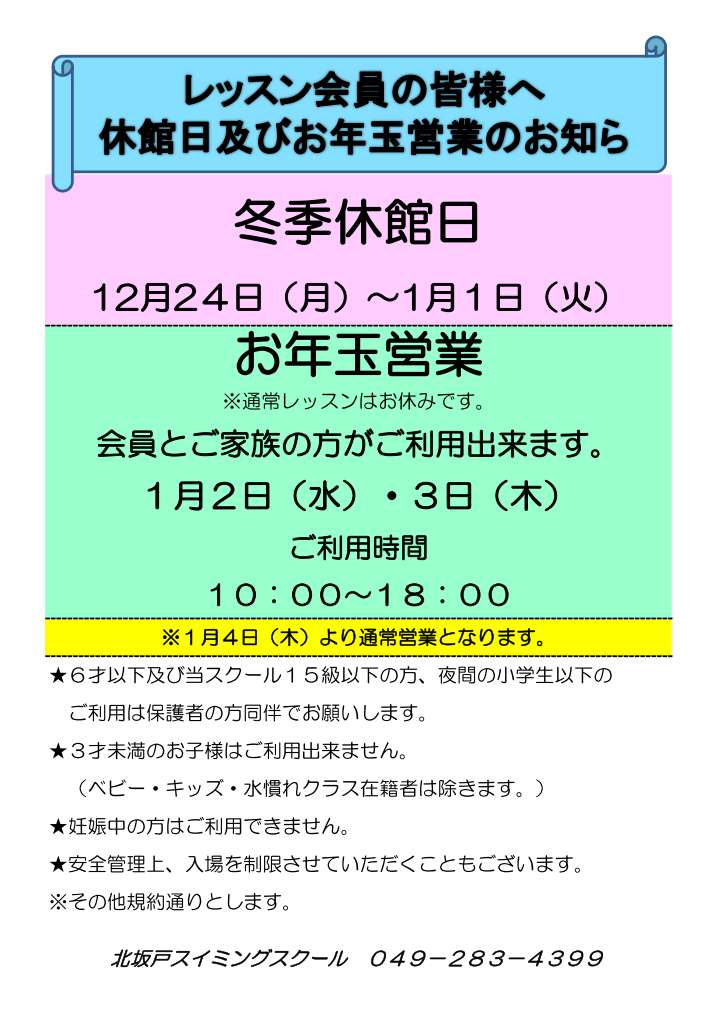 1月からの退会・休会・変更は12月23日(日)までに変更をお願いします。