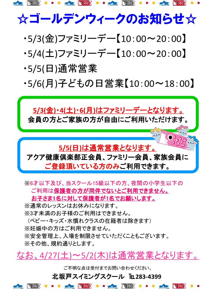 ゴールデンウイークのお知らせ