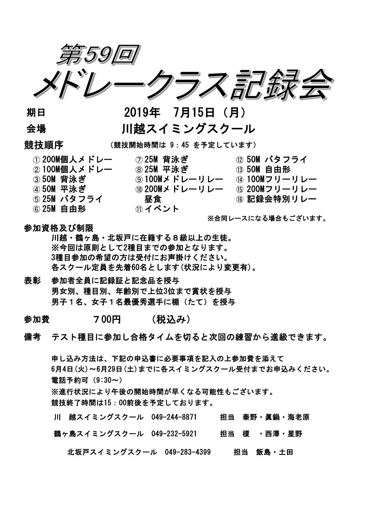 メドレークラス記録会のお知らせ