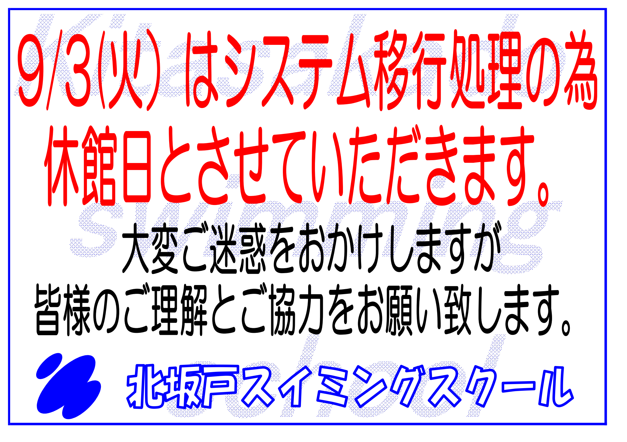 9/3(火)休館日のお知らせ