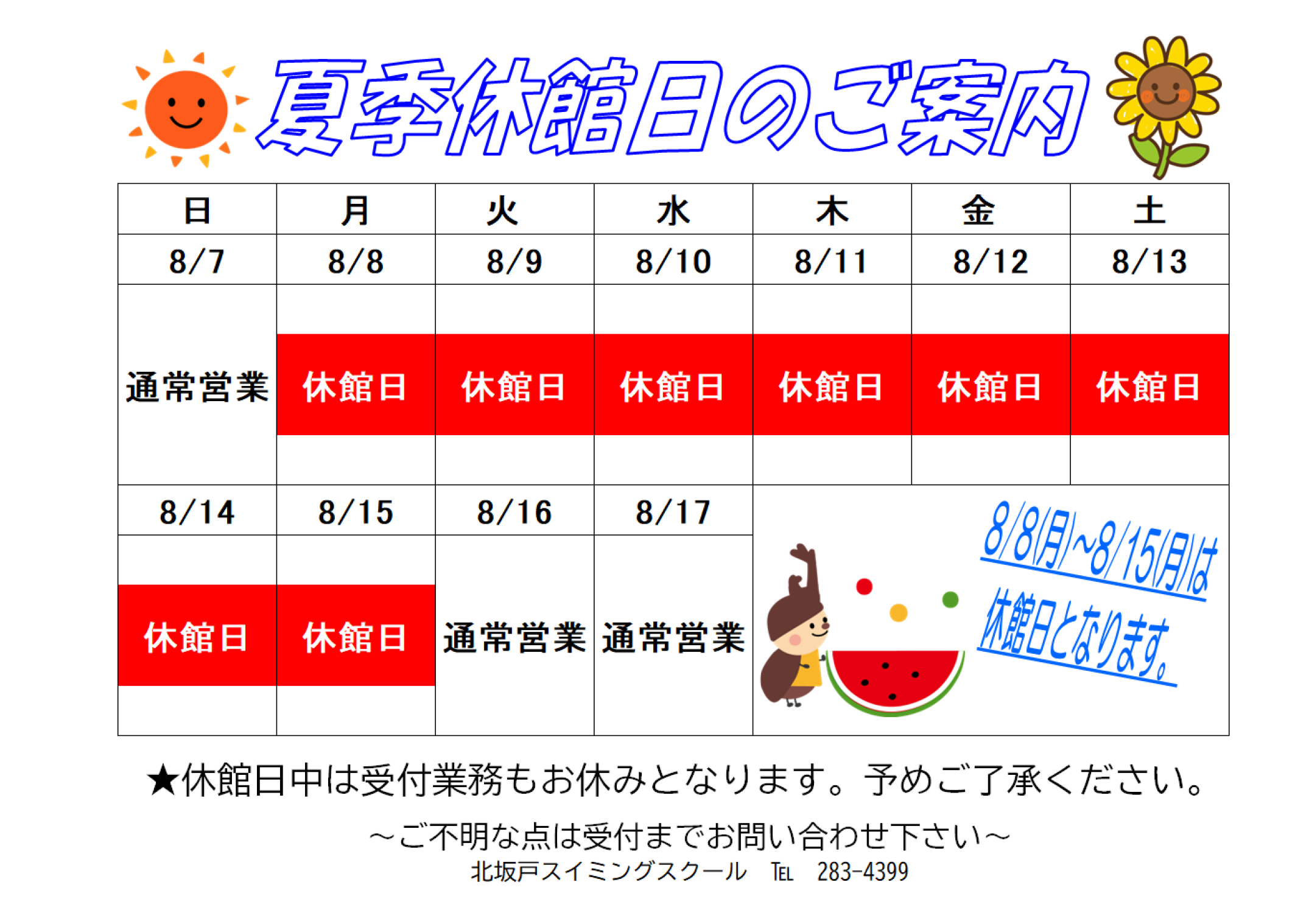 夏季休館日のご案内