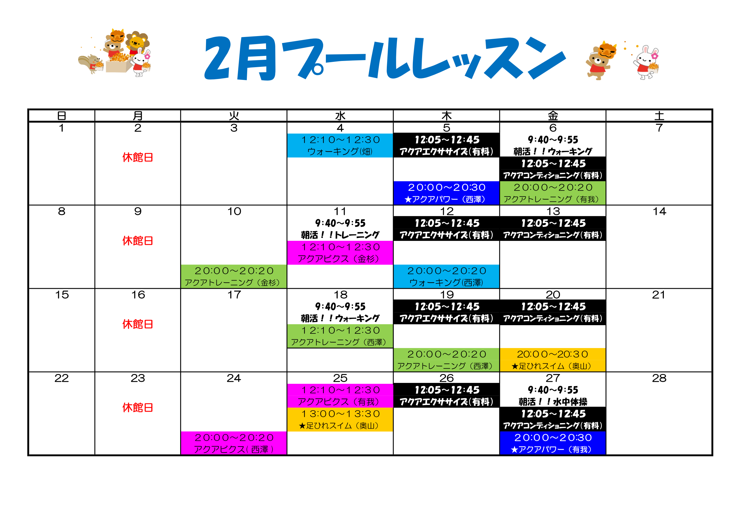 毎月の無料プールレッスンの日程をご紹介。